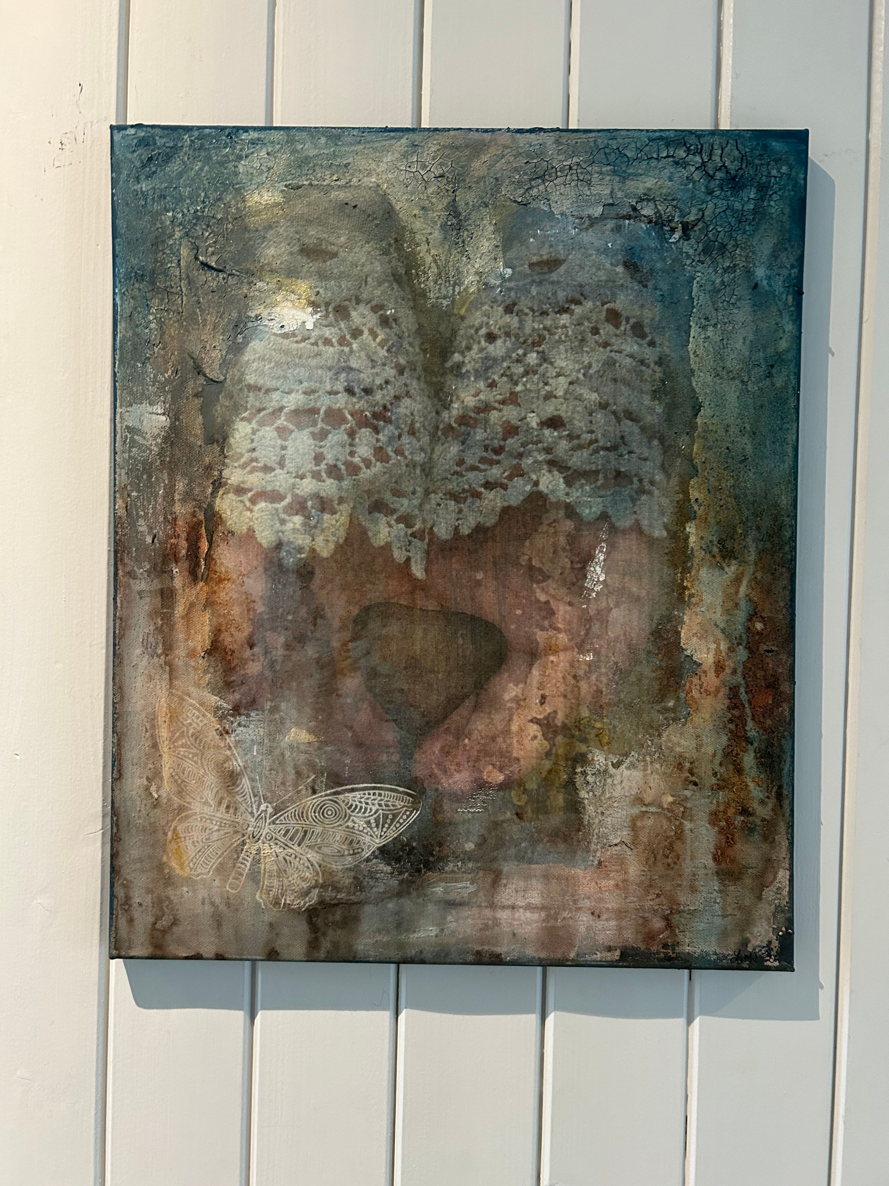 Mixed media (silketrykk og akryl) på lerret 46*38 cm.